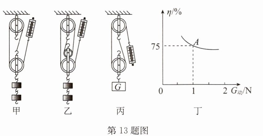 (3)采用图丙装置,改变动滑轮重,提升同一物体进行多次实验,获得数据并绘制出如图丁所示的图像,分析可知:被提升物体所受的重力相同时,动滑轮越重,滑轮组的机械效率