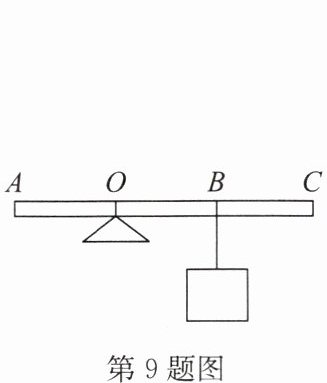 9. 如图所示,轻质杠杆($AO= OB= BC$)上挂着150N的重物,为使杠杆在水平位置平衡,可采取的方法有: