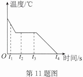 11. 如图所示是某物质由液态变为固态过程中温度随时间变化的图像,由图可知:$t_{4}$时刻物体的内能