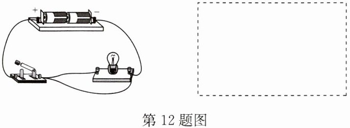 12. 如图所示实物电路中,有一根导线接错而使小灯泡被短路,请把这根导线找出来,在上面打一个“×”,并在虚线框中画出正确的电路图。