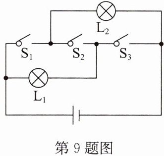 9.如图所示的电路中,若要使两灯泡$L_{1}和L_{2}$串联,则应闭合开关