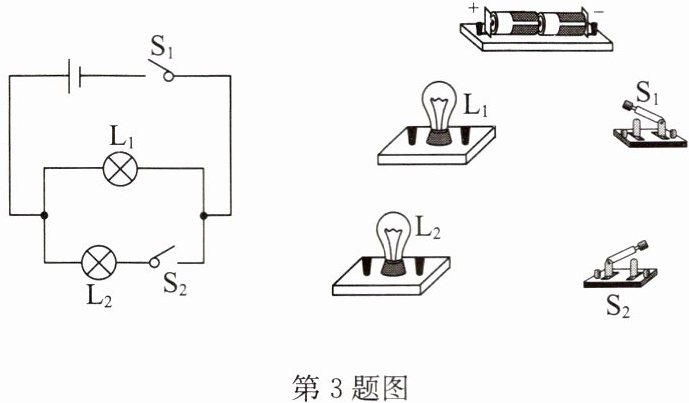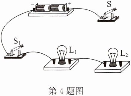 4. 用笔画线代替导线完成电路连接.要求:组成一个并联电路,开关S控制灯$L_{1}和L_{2}$,开关$S_{1}只控制灯L_{1}$.