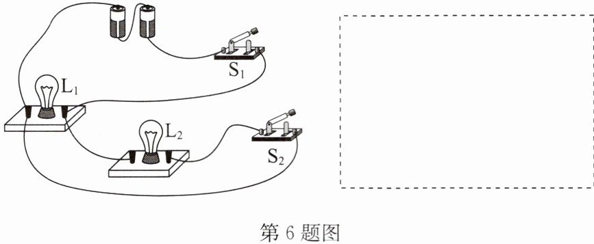 5. 根据如图所示的实物图,在虚线框内画出对应的电路图.