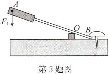 3. 如图所示是用螺丝刀撬图钉的示意图,画出动力$F_{1}的力臂l_{1}和阻力F_{2}$的示意图.($F_{2}$沿竖直方向)