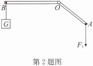 2. 如图,杠杆AOB保持静止,O为支点,请作出动力$F_{1}的力臂l_{1}和阻力F_{2}$.