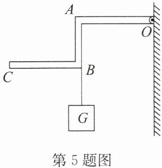 5. (2024·常州期末)轻质杠杆OABC能够绕O点转动,在B点用细线悬挂重物G,为了使杠杆在如图所示的位置平衡,请在杠杆上作出所施加最小动力$F_{1}$的示意图及其力臂l.
