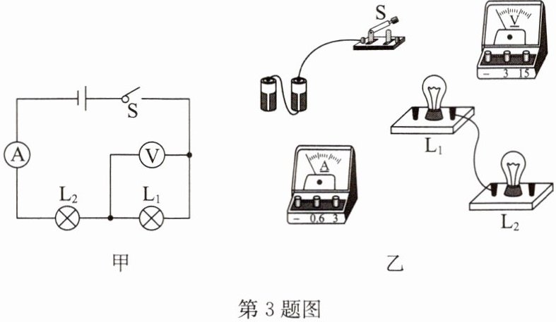 3. 按照如图甲所示的电路图完成图乙中实物图的连接,导线不能交叉.