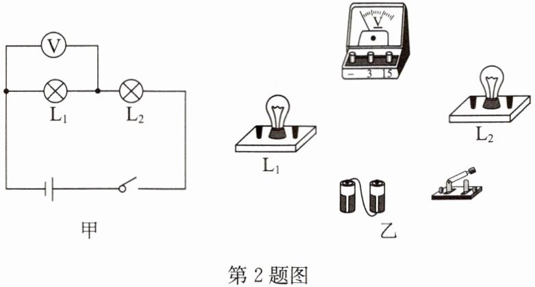 2. 请根据图中的电路图甲连接实物图乙.