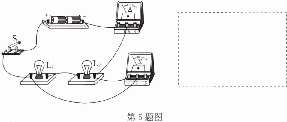 6. 如图所示为一实物电路,请在虚线框内画出所对应的电路图.