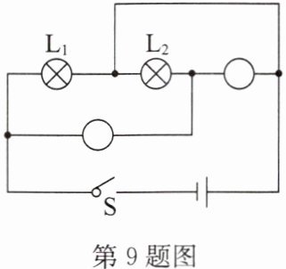 9. 如图所示,在两个“○”内选填“电压表”和“电流表”的符号,使两灯能正常工作.