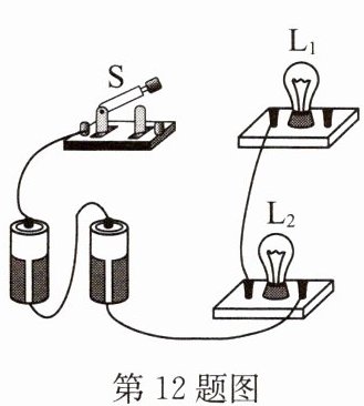 12. 将如图所示的实物电路补充完整,使灯$L_{1}$、$L_{2}$并联,且开关控制整个电路.