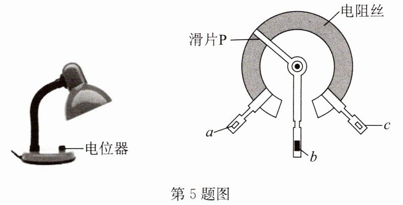 5. 如图所示为某可调亮度台灯及用于调光的电位器结构图,b 与金属滑片 P 相连,则电位器应该与灯泡