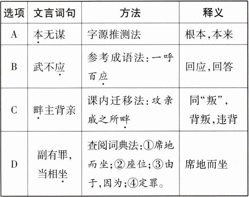 3 下列推敲文言词语的方法或释义不正确的一项是( )(3分)