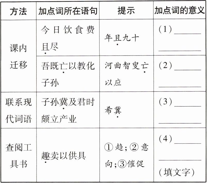 |课内迁移|今日饮食费且尽|年且九十|(1)____|