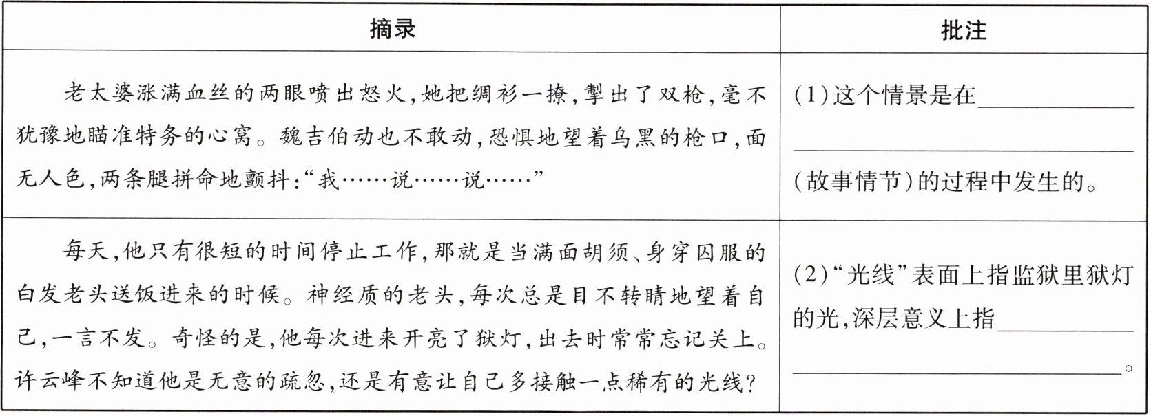9 [2025 榆林一模]下面是小星在阅读《红岩》时做的批注,请你将其补充完整。