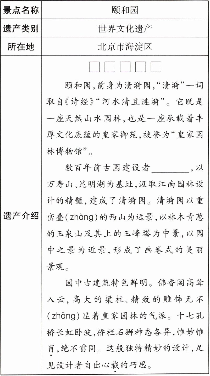 1“颐和探源”小组同学制作了“清漪出锦绣”资料卡。请你阅读资料卡并完成相关任务。