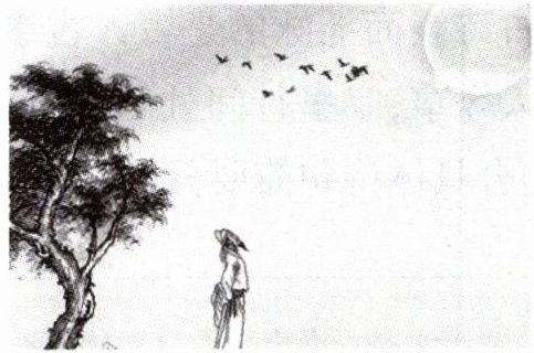 3 [2024 广州第三中学期中]“一切景语皆情语。”小文根据《月夜忆舍弟》前两联绘制出了下图(右上角是明月,中间是一群大雁),但其中“一群大雁”的场景不合诗意,请你向小文解释应做怎样的修改,并说明理由。(2分)