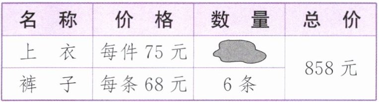 5.(生活应用)刘阿姨批发服装的记录表被弄脏了,你能帮她算出批发的上衣数量吗?