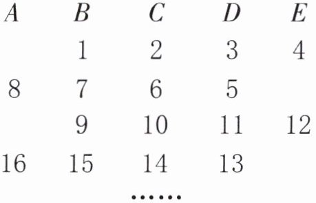 2022÷8=252(组)……6(个) 排在字母C的下面 252×2+2=506(个) 解析:由题意可知,每8个数为一组,2022÷8=252(组)……6(个),每组的第6个数都排在字母C的下面;字母C的下面每组都有2个数,余下的6个数中有2个数排在字母C的下面,所以排在字母C下面的数一共有252×2+2=506(个)。