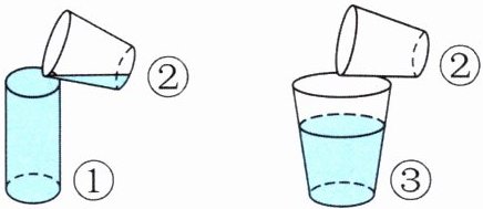 (1)先将②号杯子装满水,再分别倒入①号和③号杯子里(如图)。这三个杯子中,(