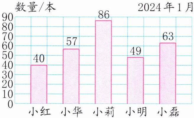 1. 下面是小红和她的4名同学上学期在学校图书室借书的情况统计图。