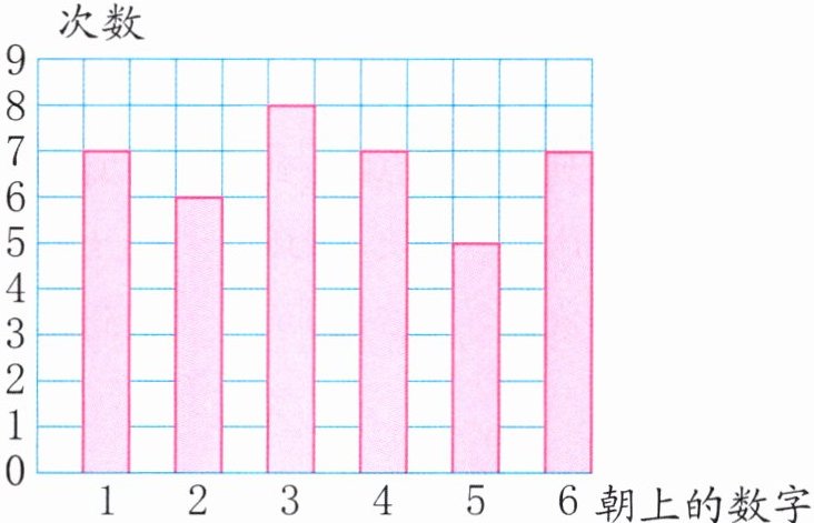 3.(镇江丹徒区)小敏和小林做了一个正方体,六个面上分别写有1到6,他们把这个正方体任意抛40次,结果各个数字朝上的情况如图所示。