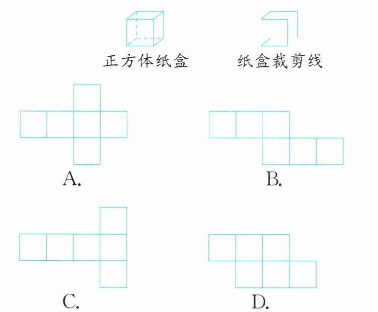 (2)(模型意识)将一个正方体纸盒沿如图所示的裁剪线剪开,并展成平面图,其形状为(