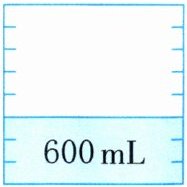 2. 在一个空量杯里倒入600mL水(截面如图),水占这个量杯总容积的$\frac {3}{8}$。求这个量杯的总容积,列式为$600÷\frac {3}{8}= 600×\frac {1}{3}×8= 1600(mL)$,其中$600×\frac {1}{3}$表示(