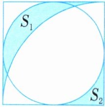 4. (探究创新)如下图,正方形的边长是2厘米,求涂色部分$S_{1}与S_{2}$面积的最简整数比。
