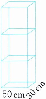 4. 妈妈买了一个三层书架(如图),书架外包装标明“$50cm×30cm×150cm$”。做这个书架,至少需要多少平方分米的木板? (木板材质相同,厚度忽略不计,左面、右面、后面、上面、底面及中间隔板均为木板)