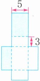 5. 一个长方体(如图)的长为8厘米,上面与前面的面积之和为72平方厘米,右面的面积是上面的一半,求这个长方体的表面积。