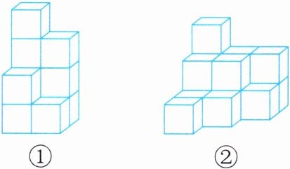 2. (数形结合)下面两个立体图形都是由棱长1厘米的正方体搭成的。