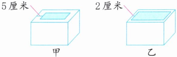 5. 有甲、乙两个厚度均匀的无盖长方体泡沫箱(如下图),从外面量,两个泡沫箱的长、宽、高都相等。它们的体积相等吗?容积呢?为什么?(底部厚度与各自的箱壁厚度相同)
