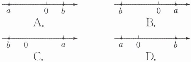 9. 如果a,b是有理数,且$|a|= -a$,$|b|= b$,$|a|>|b|$,那么用数轴上的点来表示a,b,正确的是 (