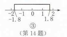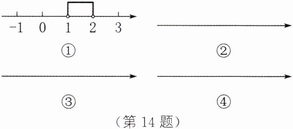 14. 如图①,用粗线在数轴上表示了一个“范围”,这个“范围”包含所有大于1且小于2的数(数轴上表示1与2这两个数的点为空心,表示这个范围不包含数1和2).