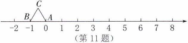 11. 等边三角形 ABC 在数轴上的位置如图所示,点 A,B 表示的数分别为 0 和-1.若三角形 ABC 绕着顶点按顺时针方向在数轴上连续翻转,第 1 次翻转后,点 C 表示的数为 1,求第 2026 次翻转后,落在数轴上的点表示的数.