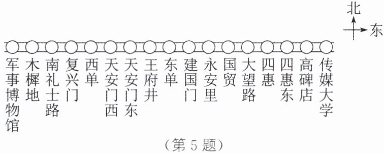 5. 新考向·地域文化(2025·泉州泉港期末改编)如图所示为北京市地铁1号线的部分线路图.