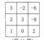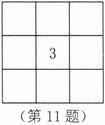 11. 在如图所示的方格中填入相应的数,使它符合下列语句的要求:① 3 的正上方是一个负整数;② 3 的左上方是一个正整数;③ 一个既不是正数又不是负数的数在3的正下方;④ 3 的左边是一个正整数;⑤ 剩下的四格请分别填入正数和负数使这四格中正数与负数的个数相同.