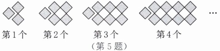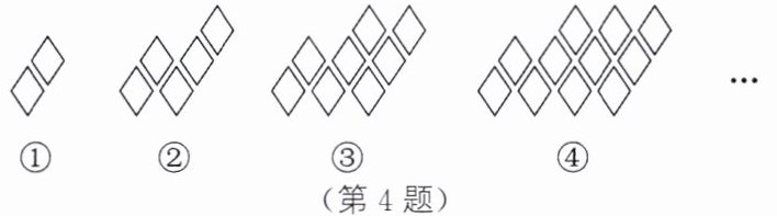 4. (2024·重庆B卷)用菱形按如图所示的规律拼图案,其中第①个图案中有2个菱形,第②个图案中有5个菱形,第③个图案中有8个菱形,第④个图案中有11个菱形……按此规律,则第⑧个图案中,菱形的个数为(