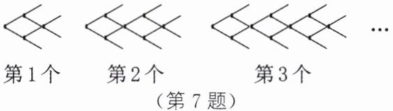 7. 如图所示为一组有规律的图案组成的“小鱼”群,它由若干根火柴棒组成.第1个图案由8根火柴棒组成,第2个图案由14根火柴棒组成,第3个图案由20根火柴棒组成,第4个图案由26根火柴棒组成……按此规律,第n个图案由多少根火柴棒组成(用含n的代数式表示)?