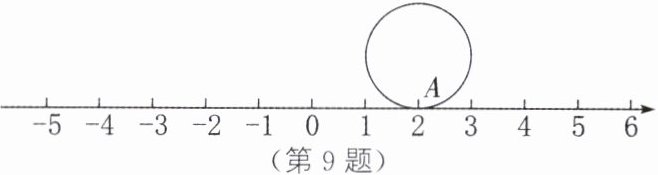 9. (2025·清远英德期末)如图,直径为 2 的圆上有一点 A,且点 A 与数轴上表示 2 的点重合,将这个圆在数轴上向右无滑动地滚动,当点 A 再次与数轴上的某个点重合时,这个点的位置应在(