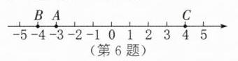5. A 是数轴上的一个点,将点 A 向右移动 6 个单位长度,再向左移动 7 个单位长度,此时点 A 恰好在原点,则点 A 最初表示的数是