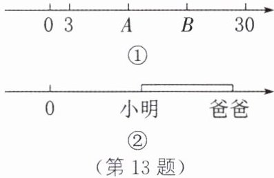 13. (2024·襄阳期末)如图①,将一根木棒放在数轴(单位长度为 1)上,木棒的左端与数轴上的点 A 重合,右端与数轴上的点 B 重合.