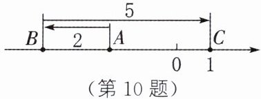 10. 如图,数轴上一动点 A 沿数轴向左移动 2 个单位长度到达点 B,再沿数轴向右移动 5 个单位长度到达点 C,则与点 A 表示的数互为相反数的数是