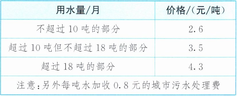 (3)如果小强家和小明家2月一共用水23吨,共缴纳水费81.8元,其中小强家的用水量少于10吨,小明家的用水量少于18吨,那么小强家和小明家2月各用水多少吨?