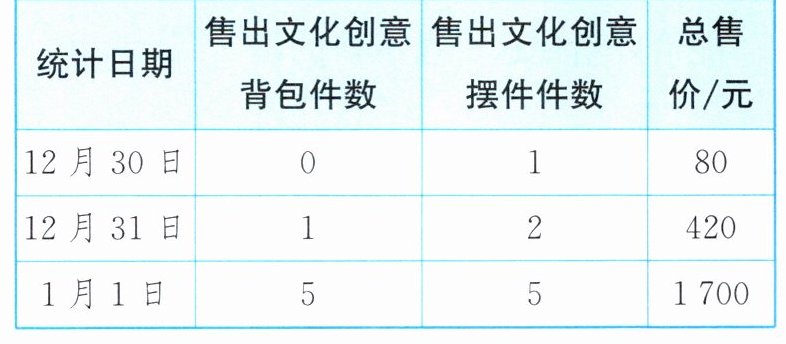 7. (2025·呼伦贝尔扎兰屯期末)小明家经营一家文化创意产品商店,他在课余时间关注了文化创意背包和文化创意摆件两种商品的销售情况,如下表: