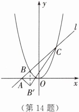 14. 在平面直角坐标系中,直线$l:y= a(x+2)(a>0)与x轴交于点A$,与抛物线$y= ax^2交于B$,$C$两点(点$B在点C$的左边).
