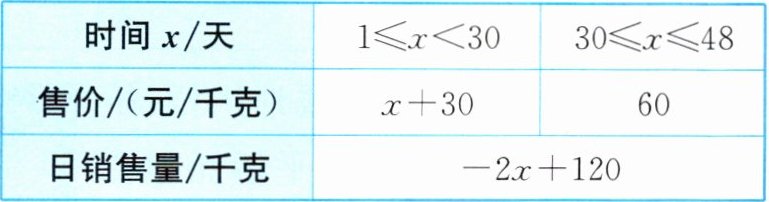 7. 某商贸公司购进某种商品,经过市场调研,整理出这种商品在第x(1≤x≤48)天的售价与日销售量之间的关系如下表: