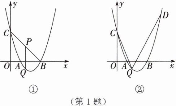 2. (2024·遂宁)已知二次函数$y= ax^2+bx+c(a\neq0)的图象与x轴分别交于点A(-1,0),B(3,0)$,与$y轴交于点C(0,-3)$,$P,Q$为图象上的两点.