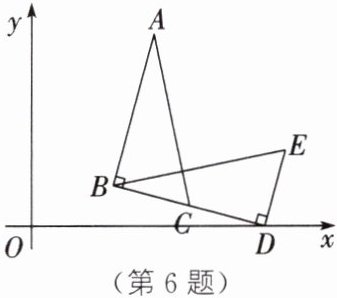 6. 如图,在△BDE中,∠BDE= 90°,BD= 4,点D的坐标是(6,0),∠BDO= 15°,将△BDE旋转到△ABC的位置,C是BD的中点,则旋转中心的坐标为______.